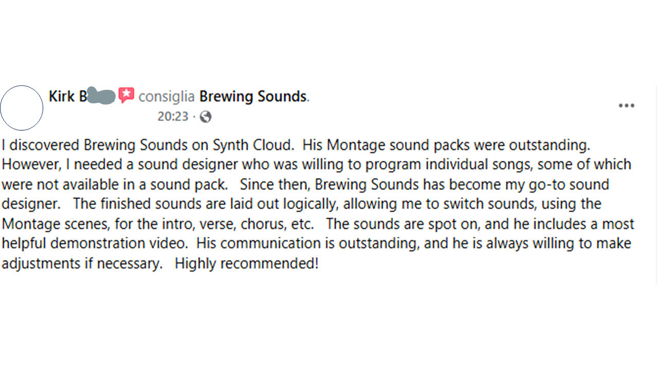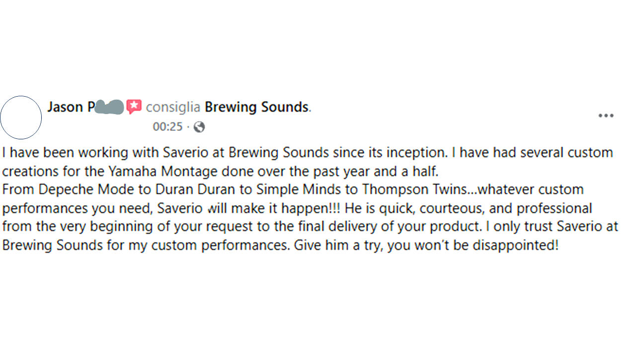 Sound designer e tastierista professionista specializzato in Yamaha Montage, MODX e tastiere serie M. Ricreo meticolosamente i timbri leggendari degli anni '70,'80 e '90 (rock, pop e synthwave), creando patch su misura sia per uso in studio che per il live.Progettato per musicisti live professionisti.Il mio approccio fonde tecnica, passione per i suoni di synth e musicalità, con l’obiettivo di trasformare queste intuizioni in suoni subito pronti all’uso.